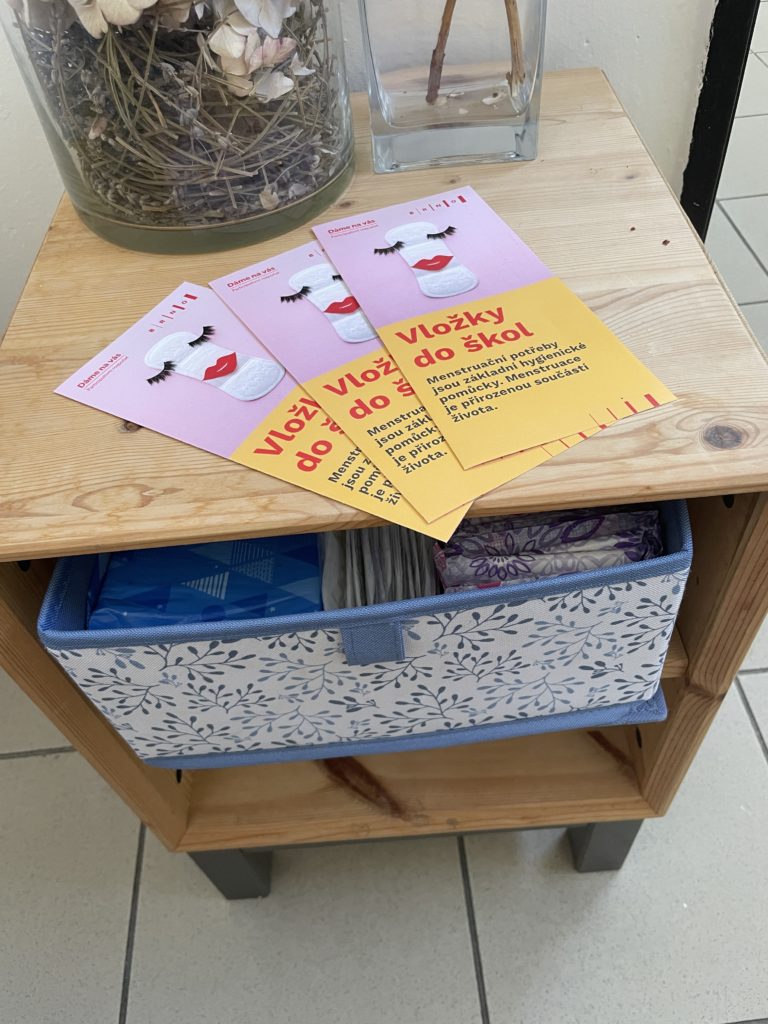 Každá zapojená škola obdržela na začátku školního roku přiměřenou zásobu hygienických potřeb (jednotlivě balené menstruační vložky) dle počtu žákyň. V průběhu školního roku pak budeme zásoby doplňovat.